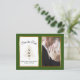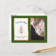 Demandez à vos invités de sauver votre date mariage avec ce design simple et élégant avec votre photo, script moderne, texte noir et un arbre de Noël étoilé doré encadré d'or métallique sur un arrière - plan vert de forêt. Customisez-le avec votre photo, votre date de mariage, vos noms et votre emplacement sur le devant, ainsi que votre message, vos noms et votre adresse de retour sur le dos.