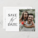 Informez vos invités de votre prochain grand jour avec cette invitation de mariage élégant Enregistrer la date. Une conception élégante et minimale avec une police de script magnifique, cette carte est prête pour vous d'ajouter vos détails et votre propre photo. Laissez le texte comme indiqué ici en noir, ou changez la couleur pour correspondre à votre thème de jour de mariage.
