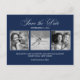 Carte Postale Faire-part Elegant Navy Blue Photo Wedding Enregistrer la dat