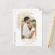 Elégant or dessiné à la main spray de style rose et feuillage avec modèle photo en arc et champs de texte modifiables. Le verso comporte un graphique floral complémentaire et des champs de texte supplémentaires.