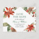 Carte postale d'annonce de mariage élégant poinsettia rouge et pin Économisez la Date