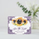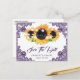 Carte Postale Faire-part Elegant Purple Floral Lace Sunflower Wedding