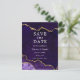 Carte Postale Faire-part Élégant Purple Gold Marble Geode Enregistrer La Da
