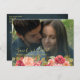 Élégant printemps été nuit ou automne / fall photo mariage enregistrer la date carte postale avec de belles roses romantiques bordure et fausse typographie éditable script. Parfait pour un mariage moderne rustique élégant jardin / romantique en plein air.