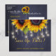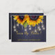 Mariage automnal rustique élégant, modèle de carte postale "save the date" sur fond bleu marine minuit foncé avec de grands tournesols magnifiques et une guirlande de lumières scintillantes. Remplissez vos informations dans les espaces prévus, vous pouvez choisir de le personnaliser davantage en changeant la couleur de fond, les polices et les couleurs de lettrage. ---- L'invitation convient pour un mariage estival élégant ou un mariage champêtre rustique automnal / mariages en plein air dans un jardin ou une arrière-cour. --- Si vous avez besoin d'aide pour personnaliser, n'hésitez pas à me contacter !