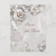Fleurs blanc antique sur fond de tissus en organza de mariée. Insérez vos noms et date.