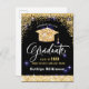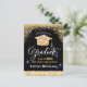 Elégante Calligraphie Gold Parties scintillant Sparkling Graduation Faire-part carte postale. Félicitations à la GRAD ! Félicitations pour leur succès bien mérité et célébrez-les avec cette carte de faire-part élégante. Tous les textes sont pré-arrangés pour que vous personnalisiez facilement et rapidement avec vos propres détails.