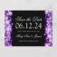Conception de mariage "Économisez la date" avec des lumières scintillantes romantiques violet, et des noms et date personnalisés. Impressionnez votre famille et vos amis avec ce design moderne et élégant. Entièrement personnalisable ! Facile à utiliser et à personnaliser