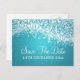 Carte Postale Faire-part Élégante Économisez la date vague bleue scintillan