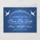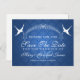 Carte Postale Faire-part Élégante Étape Date Oiseaux Monogramme Bleu