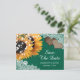 Carte Postale Faire-part Emerald Green Sunflower Wedding Enregistrer La Dat