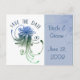 Enregistrez la carte postale de date avec les fleurs bleues et vertes. Ajoutez facilement votre nom et vos dates à l'avant et les détails à l'arrière. Carte postale rapide et facile pour informer tout le monde de votre événement spécial!