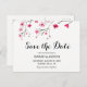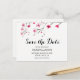 En utilisant l'art délicat des aquarelles, les fleurs de cerisiers roses et rouges se trouvent sur le devant de cette carte postale chic et moderne Enregistrer la date.. Personnalisez cette carte avec les noms de la mariée (fiancée) et du marié (fiancé) (prénoms et noms complets), la date du mariage, l'emplacement, l'adresse de retour et le site Web du mariage (peut être supprimé si non requis).