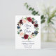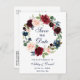 Carte Postale Faire-part Enregistrer la date Burgundy Blue Floral Wreath