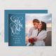 Cette élégante photo en écriture blanche sauvez la carte de date comprend votre photo spéciale et un script décoratif enregistrez la date au-dessus de vos noms, date et lieu. Vous pouvez personnaliser la couleur au verso pour l'adapter ou ajouter un message. Conçu par Thisisnotme©
