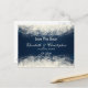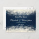 Enregistrez la carte de date que vous pouvez personnaliser / customiser avec le nom de la mariée et des mariés et leur date de mariage. Un design élégant et abstrait avec de la dentelle crème et des perles faites de cercles et de bulles. L'arrière - plan est bleu foncé avec des carrés défraîchis sur le côté. Design joli et délicat.