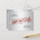 Cartes de SAVE OUR DATE élégantes et modernes pour envoyer à vos invités. calligraphie script noir. Cœur de diamant au milieu. fond argenté faux avec brosse métallisée en or rose. Modèles personnalisés en ligne pour une édition facile. Ajoutez votre texte à l'avant et à l'arrière de la carte. Contactez le concepteur pour des demandes spéciales.