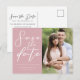 Carte Postale Faire-part Épousailles Couple Photo Enregistrer la Date Rose