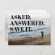 La carte postale parfaite pour le couple économe avec une photo de fiançailles présentant une vue panoramique qui met en valeur le paysage de votre région et est éloignée du couple, cette carte présente une superposition de texte d'annonce légèrement impertinente avec une esthétique typographique forte. Le dos de la carte vous permet d'ajouter plus d'informations pour vos invités sur une photo de fiançailles verticale plus traditionnelle. Si vous avez besoin d'un contrôle de personnalisation plus poussé pour supprimer le dégradé d'assombrissement de la photo sur le devant ou ajuster le type, cliquez sur le lien "personnaliser davantage" sous les images de modèle.