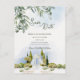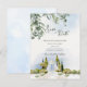 The design showcases cascading greenery framing the top and a beautifully illustrated garden pavilion below — evoking the charm of estate, vineyard, and European-inspired outdoor weddings. Soft sky tones and elegant typography create a refined, classic first impression for your guests.