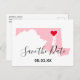 Forme de carte du Maryland de couleur rose personnalisée avec un design d'annonce de date.