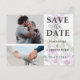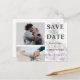 Une annonce élégante d'enregistrement de la date est parfaite pour mettre vos plans de mariage en mouvement. Elle comporte un modèle de photo et une grande typographie « enregistrer la date » avec l'ajout d'éléments floraux roses délicats, le tout sur un fond blanc. Personnalisez avec vos propres détails.