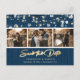 Cartes de faire-part de mariage personnalisées avec une photo en collage de 3 images sur un fond en bois bleu marine rustique orné de guirlandes lumineuses. Personnalisez facilement cette carte de faire-part de mariage photo bleu marine rustique avec vos images et les détails de votre mariage, y compris votre site web de mariage, si vous le souhaitez. Pour des demandes personnalisées, veuillez nous envoyer un message.