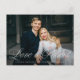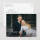 Besoin de reporter votre date de mariage ? Nos élégantes cartes de report de date de mariage sont parfaites pour informer vos invités de votre nouvelle date de mariage. La carte de report de date élégante comporte "L'amour est patient" dans un script calligraphique blanc superposé à votre photo de fiançailles horizontale. Personnalisez la carte en ajoutant vos noms, adresse de retour, détails du mariage, site web du mariage, etc.