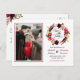 Cette carte de faire-part de mariage photo rustique tendance présente de jolies fleurs aquarelles dans des nuances vives de Marsala, de vin, de vert foncé et de rouge, avec une belle typographie calligraphique dans une couronne florale. Facile à personnaliser avec des options personnalisées.