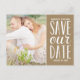 Cette carte postale de faire-part de date de mariage en papier kraft rustique comporte le texte "Save our date" écrit en typographie manuscrite décontractée. Les lettres blanches sont sur fond de papier kraft marron clair. Personnalisez avec les détails de votre mariage et votre photo préférée. Ajoutez des détails supplémentaires au verso de la carte postale.