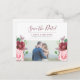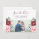 Élégante carte d'annonce de mariage romantique burgundy et rose blush avec des bordures de roses aquarelles magnifiques, feuillage vert et feuilles. +++++++++ Facile à personnaliser avec votre photo et texte des deux côtés ! +++++++++++ Convient pour un thème de jardin, floral, printemps été ou automne arrière-cour extérieur ou mariage rustique moderne romantique dans une grange ou une ferme.