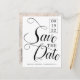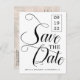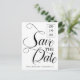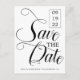 Élégante carte postale de faire-part de mariage simple noir et blanc. Les caractéristiques de conception de « save the date » en écriture calligraphique moderne en noir profond et couleur or sur fond blanc. Ajoutez votre message, photo et plus de détails au verso