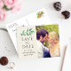 Cette carte de faire-part de mariage comporte un fond blanc chaud et doux avec une verdure minimaliste pour un look élégant et intemporel. Une mise en page verticale épurée équilibre la typographie moderne avec votre photo de fiançailles préférée pour un faire-part raffiné et romantique. Personnalisez les noms, la date et le lieu. Le verso comprend une mise en page pour l'expédition avec un espace pour l'adresse de retour, ce qui la rend à la fois belle et pratique.