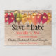 Envoyez votre annonce de "Sauver la date" de mariage rustique pour votre date de mariage automnal avec une bordure supérieure de feuilles colorées de l'automne sur une chaîne avec des lumières de lucioles. Personnalisez le texte avant et arrière dans les champs du modèle ou cliquez sur personnaliser pour sélectionner un style de police, une taille et une couleur que vous préférez.