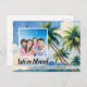 Faire-part tropicale en mouvement avec le beau bord de mer encadré de palmier. Personnalisez avec votre photo et message personnalisé et nouvelle adresse. Grand changement d'adresse carte postale pour ceux qui se déplacent vers les villes côtières ensoleillées en Floride, Californie, Delaware, Maryland, Massachusetts ou autres.