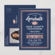 Partagez les nouvelles joyeuses d'une fête de remise de diplômes à venir avec photo personnalisée bleu marine et rose enregistrer les invitations de carte postale date. L'image et le libellé de ce modèle sont simples à personnaliser avec le nom du diplômé, l'année de classe et d'autres détails de faire-part de votre choix. Le design se compose d'une élégante bordure rayée, d'une calligraphie moderne et élégante, d'une typographie vintage classique et d'une photo préférée, telle qu'une photo de haut niveau ou une image du début de la cérémonie. Veuillez noter que l'or rose est imprimé en couleur sombre rose, et non métallique. Ces cartes de graduation élégantes sont une façon élégante de partager une fête spéciale avec votre famille et vos amis. Félicitations au diplômé !