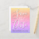 Enregistrer la date Fête d'anniversaire Faux étincelles et paillettes or, violet et rose arc-en-ciel ombré pastel Carte postale qui sont parfaits pour une fête d'anniversaire, fête d'anniversaire de mariage, Baby Shower ou mariage.