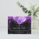 Une carte de Save the Date girly et tendance pour une fête d'anniversaire de 18 ans (ou tout âge). Un fond noir décoré de gouttes de fausse brillance violette, de paillettes et de ballons. Personnalisez et ajoutez une date et un nom/âge. Le texte : Enregistrer la date est écrit avec un grand style de lettrage manuscrit tendance.