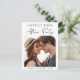 Faire-part de mariage ou carte d'invitation de réception de mariage moderne et intime. Le recto présente votre photo et "Fête Après Heureux" dans un mélange de typographie simple et d'un script élégant. Sous votre photo, ajoutez vos prénoms et date de mariage. Au verso, vous pouvez personnaliser votre annonce et invitation avec plus de détails et ajouter vos noms dans un script ressemblant à une signature.