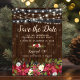 Transportez vos proches dans une fête de Noël champêtre et chaleureuse dès leur boîte aux lettres grâce à nos cartes d'enregistrement de date rustiques. Le fond chaud de tonneau en bois sombre, les accents de fleurs festifs et les lumières scintillantes fantaisistes leur donneront l'esprit des fêtes. Parfait pour tous ceux qui veulent ajouter un charme rustique aux festivités de cette saison.