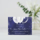 Une carte de Save the Date girly et tendance pour une fête des 16 ans, fête d'anniversaire des 16 ans. Un fond de couleur bleu marine irrégulier. Décoré de faux paillettes argentées et de ballons blancs. Le texte : Save the Date est écrit avec un grand style de lettrage à la main tendance.