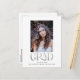Faire-part de Graduation Photo Graduation de la Typographie d'Argent moderne avec un texte élégant et tendance ainsi qu'une photo pleine taille sur le devant. Tous les textes et les couleurs sont entièrement personnalisables - parfait pour vos annonces de graduation simples et modernes. Veuillez nous contacter à cedarandstring@gmail.com si vous avez besoin d'aide pour la conception ou les produits correspondants.
