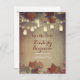 Feuilles d'érable bordeaux, pots mason, guirlandes lumineuses et toile de jute rustique cartes de sauvegarde de date d'automne