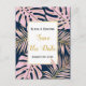 Carte Postale Faire-part Feuilles tropicales rose, mariage bleu nuit Save t