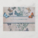 Carte Postale Faire-part Fille Fleur Papillons Bleus et Fleurs