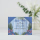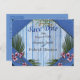 Carte Postale Faire-part Fleurs arty roses sur texture de bois bleu
