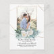 Aquarelle verte, cadre d'or géométrique et peonies blanches bouquet photo enregistrer la date cartes postales