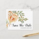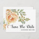 Pêcher les fleurs de cactus aquarelle printemps et mariage fleuri été Enregistrer la carte postale Date. Il présente de belles fleurs de cactus pêche, des feuilles succulents verts et l'expression "Save the Date" en typographie noire.
