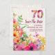 Annoncez votre célébration de jalon dans le style avec cet élégant 70e anniversaire enregistrer la carte de date. Doté d'un arrière - plan de lin souple avec un "70" fleuri, ce design personnalisable est parfait pour partager les détails de votre journée spéciale avec votre famille et vos amis. Bon appétit !