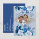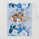 Carte Postale Faire-part Fleurs de rose blanche sur papier à motif bleu